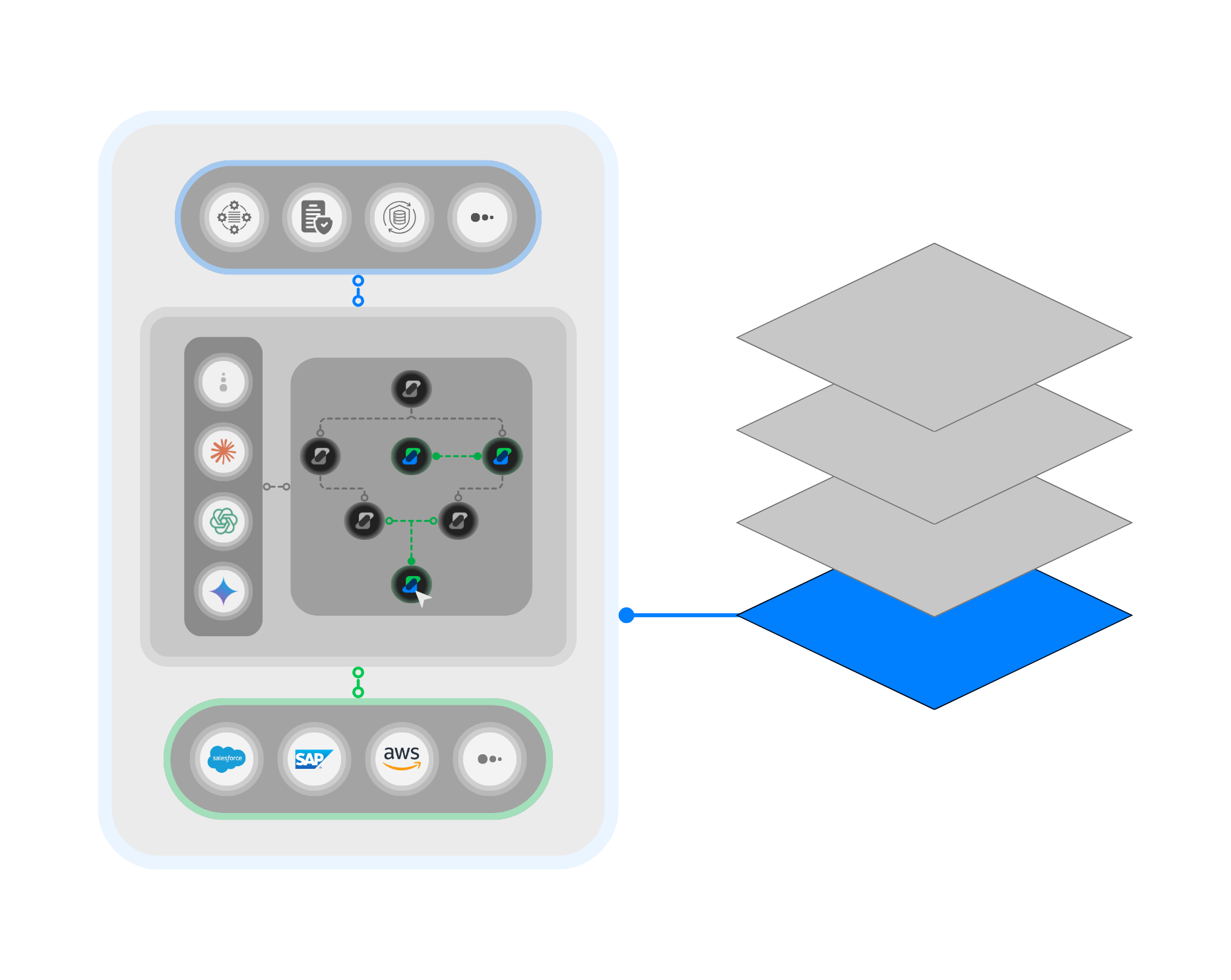 A flexible, layered design where projects, workflows, AI agents, and your data all connect seamlessly—empowering you to automate and scale any business challenge.