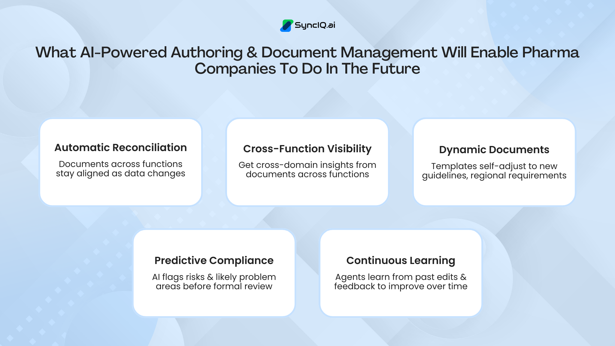 SyncIQ’s AI-powered authoring and document management offers a path out of this drag by automating repetitive work, embedding compliance, and freeing experts for what matters.